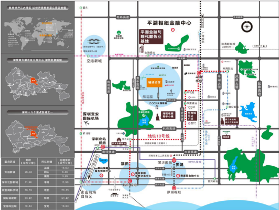 項目相鄰三地鐵在建的10號線禾花站,規劃的1718號換乘樞紐交于此、五大快速清平高速、丹平、水官、機荷、南平、五大高速,兩城軌平湖中心商圈的物業,
