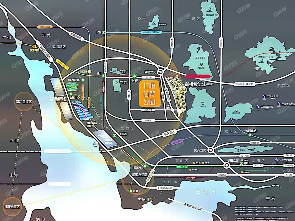 沙井市民廣場(chǎng),大鐘山公園,新橋中心公園,鳳凰山,大頭崗在旁。